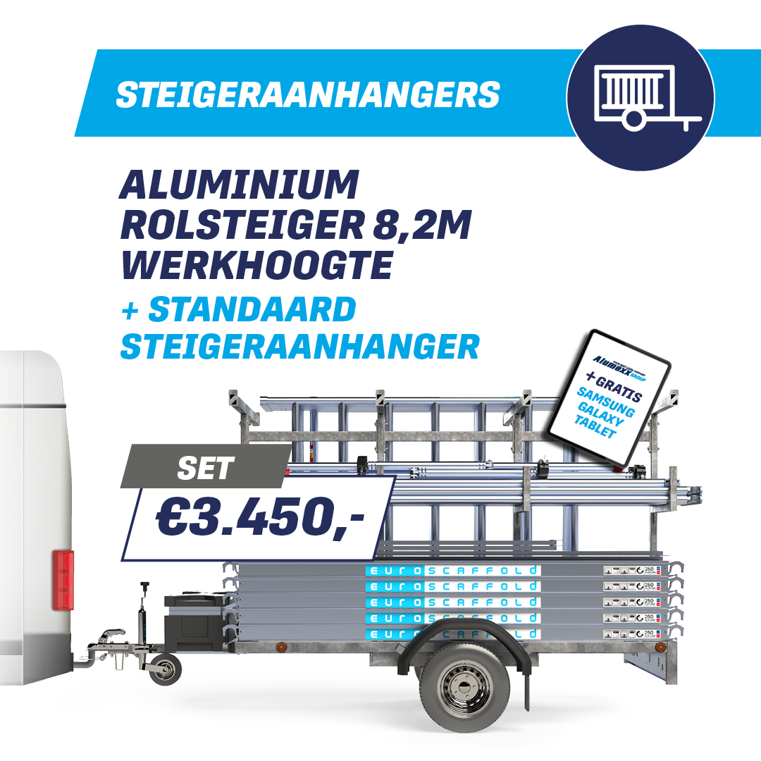 Op zoek naar een rolsteiger inclusief aanhanger? Dan is deze combideal ideaal voor u. De steigeraanhanger is ideaal wanneer u dagelijks gebruik maakt van een rolsteiger op diverse locaties door het land. De rolsteiger is ongeremd, mag gebruikt worden wanneer u beschikt over een Rijbewijs B en is RDW goedgekeurd. Op zoek naar een eenvoudige en veilige manier voor het vervoeren van uw rolsteiger? Bestel dan vandaag nog deze steigeraanhanger.