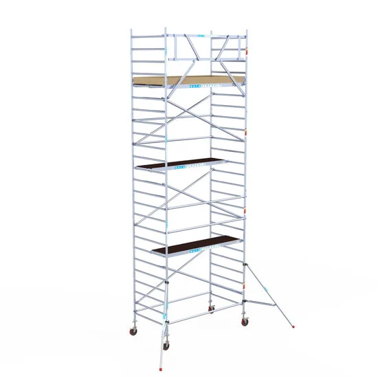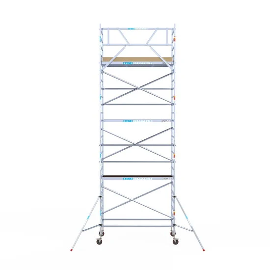 De meegeleverde Basic rolsteiger beschikt over een werkhoogte van 8,2 meter hoogte en is ideaal voor werkzaamheden aan gevels en daken. De rolsteiger is vervaardigd uit hoogwaardig aluminium en is vervaardigd in onze eigen fabriek te Krommenie. De rolsteiger heeft een lengte van 250 cm en een breedte van 135 cm. Deze combinatie maakt het mogelijk om uw materialen op het deck te plaatsen of met meerdere personen op de steiger te staan. De rolsteiger voldoet aan alle strenge eisen omtrent veilig werken op grote hoogte en beschikt over een TúV certificaat.