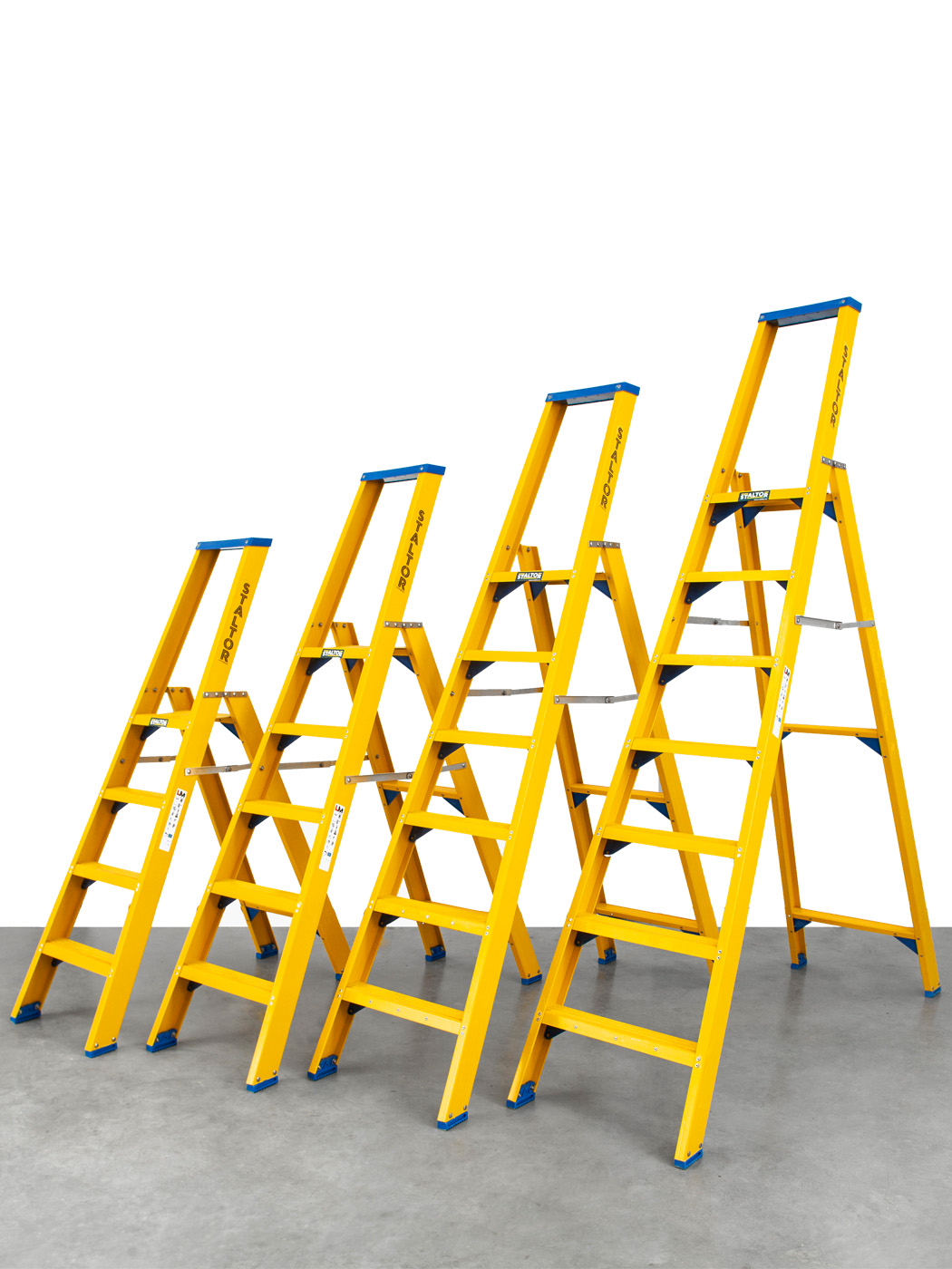 Met deze professionele Kunststof Bordestrap werk je dankzij de isolerende eigenschappen veilig in de elektrische, petro chemische en voedingsindustrie. Kunststof trappen worden gemaakt van glasvezelversterkt kunststof (GVK). De trap is elektrisch isolerend en geschikt om te werken in installaties onder spanning. Conform EN-61478 category 1 (30kV). De drukvaste spreidstandbeveiliging zorgt ervoor dat de trap niet zomaar inklapt. Dankzij de brede antislip trapvoeten sta je stabiel en veilig ✓